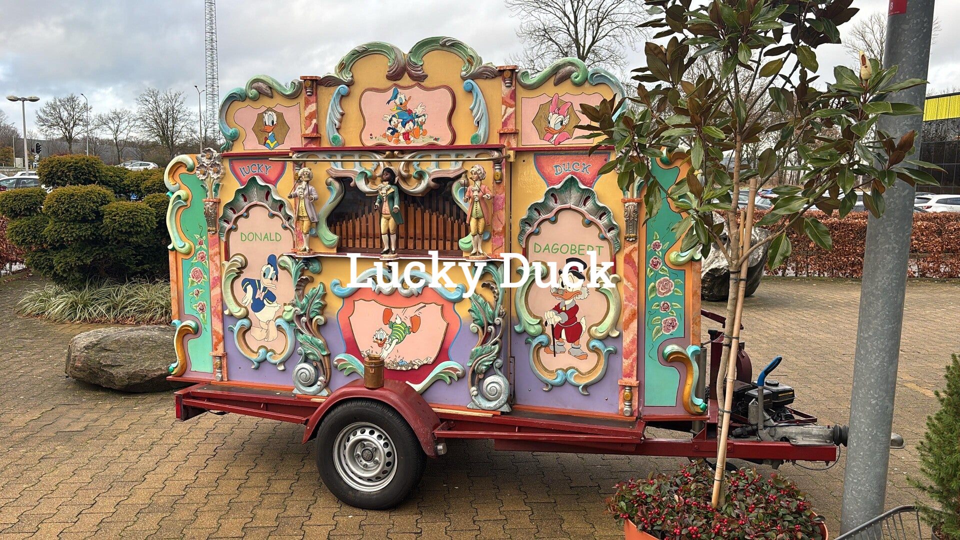 Draaiorgel "Lucky Duck" is altijd van onze (schoon)vader, Piet van der Erf, geweest. Hij heeft hem naar eigen wens laten bouwen. Helaas kon hij zelf sinds een aantal jaren niet meer weg met "Lucky duck". Vanaf dat moment nam ik, Justin van der Erf, de zoon van Piet, dit over.
